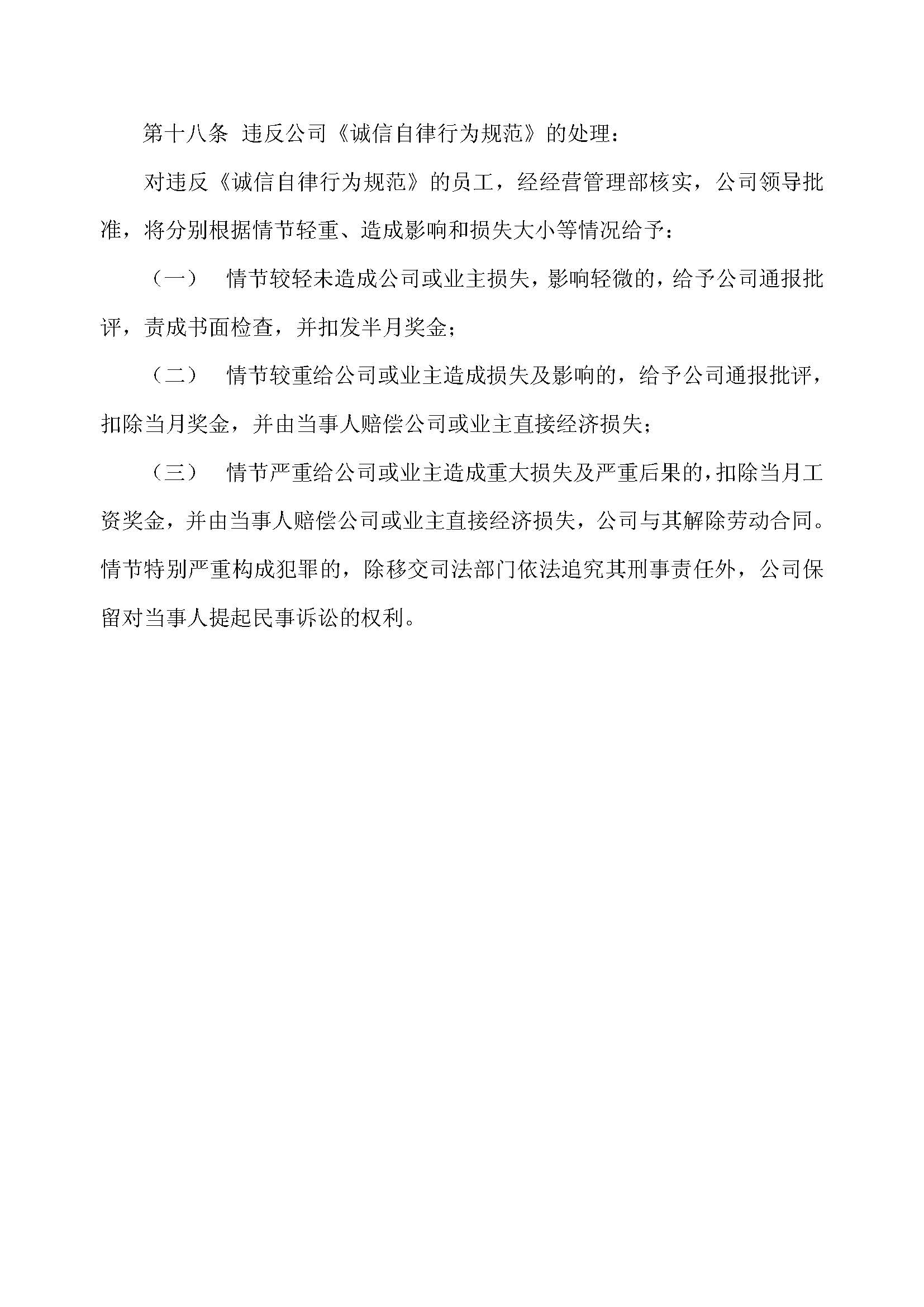 第十八條 違反公司《誠信自律行為規(guī)范》的處理: